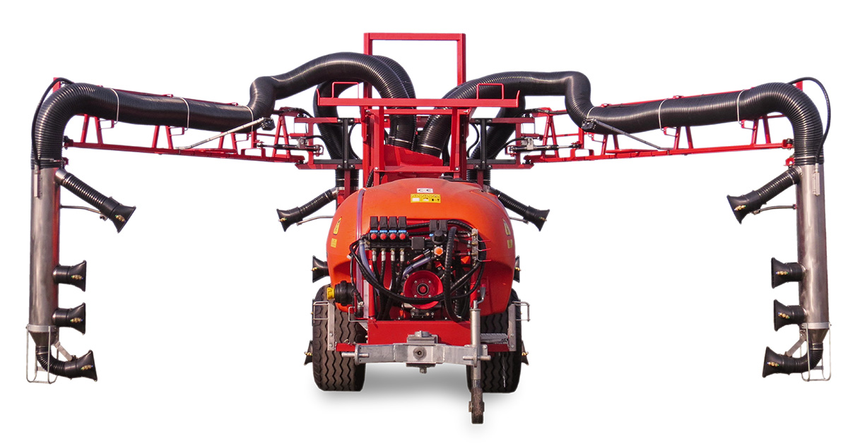 Zakres oprysku dwa rzędy o wysokości do ~1,5m, w rozstawie rzędów od 3,0 do 5,0m |